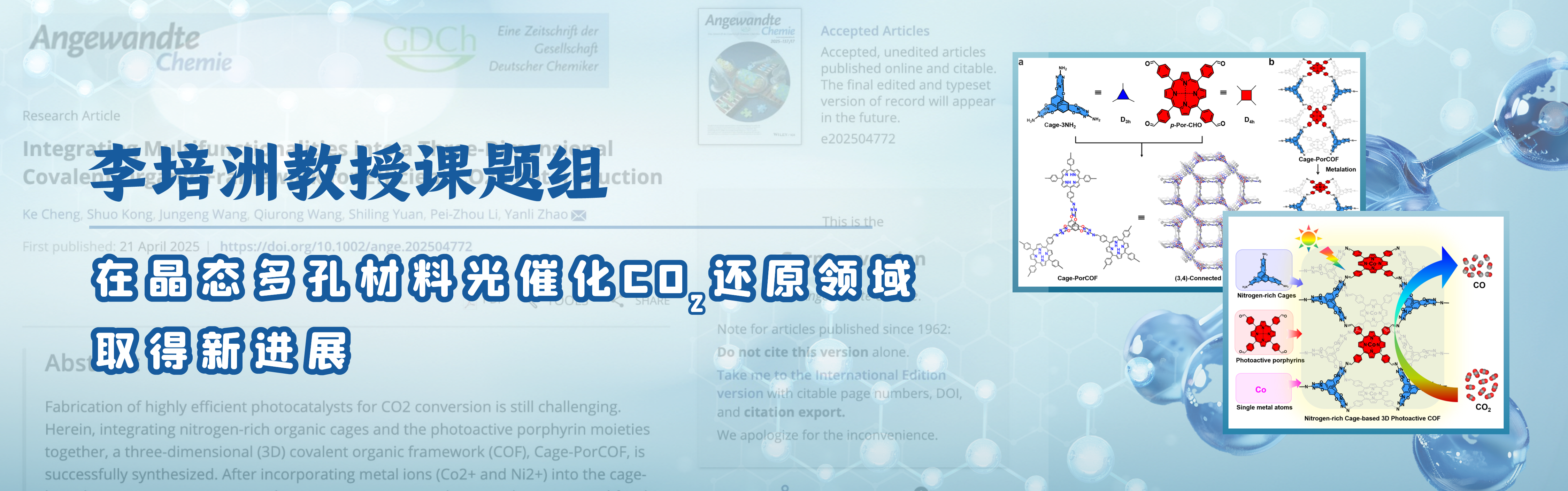 李培洲教授课题组在晶态多孔材料光催化二氧化碳还原领域取得新进展设计:付英慧供图:宣传部