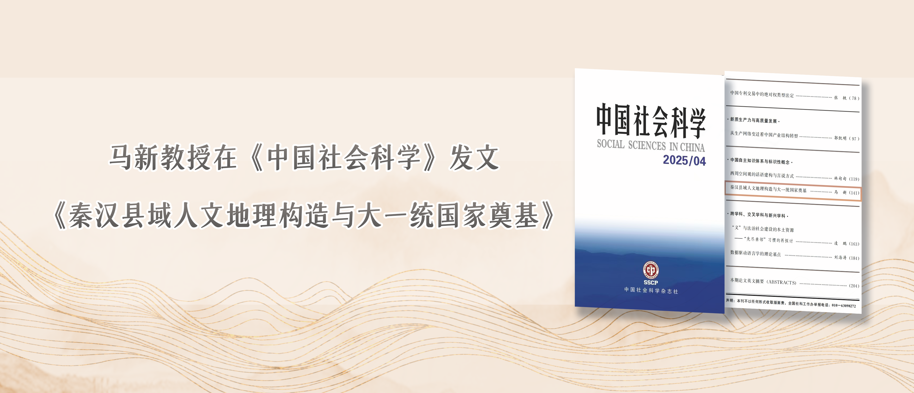 马新教授在《中国社会科学》发文《秦汉县域人文地理构造与大一统国家奠基》设计:杨文静供图:宣传部
