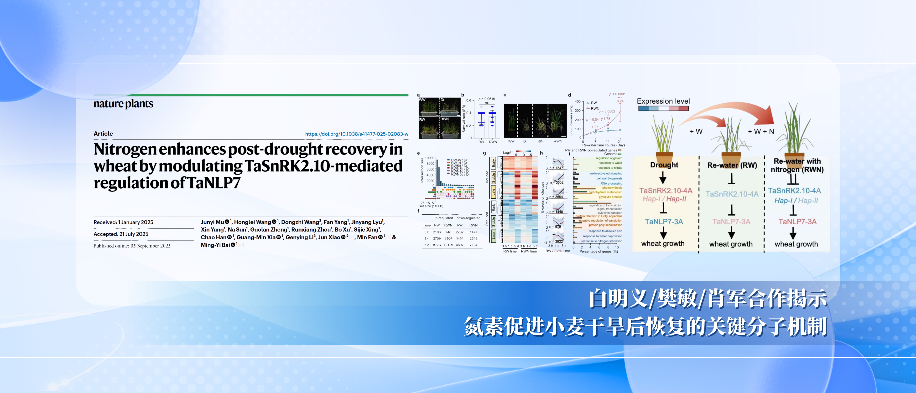 白明义/樊敏/肖军合作揭示氮素促进小麦干旱后恢复的关键分子机制设计:王艺晓供图:宣传部